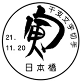 | 押印機 | 【日本橋支店名によるもの】 〒100-8799 東京都中央区銀座8-20-26 郵便事業株式会社 銀座支店 気付 日本橋支店 「干支文字・押印機(日本橋支店)」郵頼担当係 |