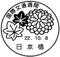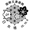 - 押印機による押印(日本橋支店のもの)・・・「国際文通・押印機(日本橋支店)」