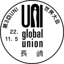 - 手押しによる押印(長崎中央のもの)・・・「UNI・手押し(長崎中央局)」