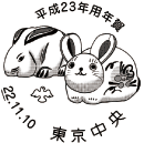 - 押印機による押印(東京中央局のもの)・・・「年賀記念・押印機(東京中央)」