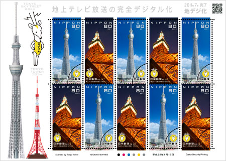 郵便事業株式会社(東京都千代田区、代表取締役社長 鍋倉眞一)は、平成23(2011)年7月24日にアナログ方式による地上テレビ放送が終了し、デジタル方式による放送(地上デジタルテレビ放送)に完全移行することを記念して、特殊切手「地上テレビ放送の完全デジタル化」を発行します。
