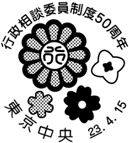〒100-8994 東京都中央区八重洲1-5-3 東京中央郵便局 「行政相談委員制度・押印機(東京中央局)」郵頼担当係 |