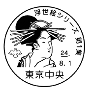 〒100-8994 東京都中央区八重洲1-5-3 東京中央郵便局 「浮世絵1集・押印機(東京中央局)」郵頼担当係 |