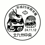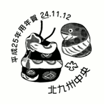 - 押印機による押印(北九州中央郵便局のもの)・・・「年賀記念・押印機(北九州中央局)(下線なし)」