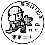 | 2. | 押印機による押印(東京中央郵便局のもの) | ・・・ | 「消防団120年・押印機(東京中央局)」 |