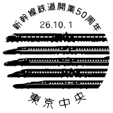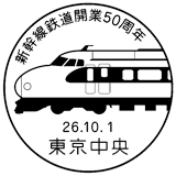| 【東京中央郵便局名によるもの】 〒100-8994 東京都千代田区丸の内2-7-2 東京中央郵便局 「新幹線50年・押印機(東京中央局)」郵頼担当係 |