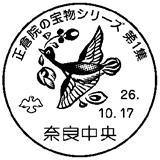 | 【東京中央郵便局名によるもの】 〒100-8994 東京都千代田区丸の内2-7-2 東京中央郵便局 「正倉院1集・押印機(東京中央局)」郵頼担当係 |