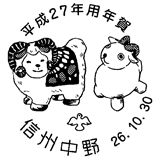 【信州中野郵便局名によるもの】 〒100-8994 東京都千代田区丸の内2-7-2 東京中央郵便局気付 信州中野郵便局 「年賀・押印機(信州中野局)」郵頼担当係 |