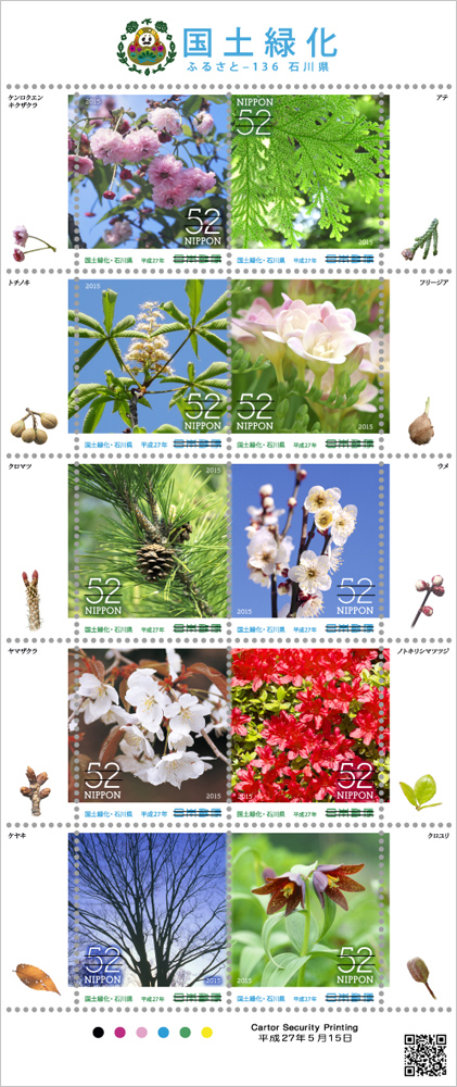 日本郵便株式会社(東京都千代田区、代表取締役社長 髙橋 亨)は、2015(平成27)年5月17日(日)に国土緑化の中心的行事である「第66回全国植樹祭」が石川県で開催されることを記念して、ふるさと切手「国土緑化」を発行します。