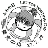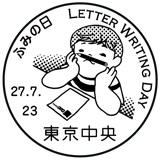| 押印機 | 【東京中央郵便局名によるもの】 〒100-8994 東京都千代田区丸の内2-7-2 東京中央郵便局 「ふみの日・押印機(東京中央局)」郵頼担当係 |