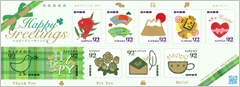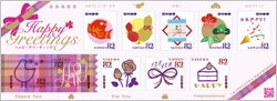 ハッピーグリーティングの郵便切手は、誕生日、七五三、結婚、出産など各種のライフイベントのお祝いにご利用いただける他、敬老の日のお祝い、クリスマス、正月など季節のお祝いにもご利用いただけます。