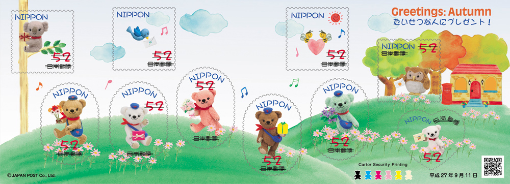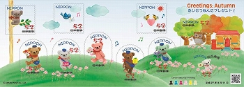 日本郵便株式会社(東京都千代田区、代表取締役社長 髙橋 亨)は、お祝いやお礼、ご挨拶等のお手紙にご利用いただけるシール式のグリーティング切手「秋のグリーティング」を発行します。