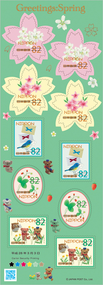 様々なイラストから構成されている春のグリーティング切手は卒業・入学のシーズン、転居等のお知らせにも利用できるほか、多目的なお祝い事など様々な春のイベントにご利用いただけます。