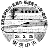 【函館中央郵便局、青森中央郵便局および東京中央郵便局の3種類の郵便局名によるもの】 〒100-8994 東京都千代田区丸の内2-7-2 東京中央郵便局気付 「北海道新幹線・押印機(3種類)」郵頼担当係 |