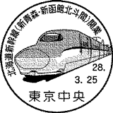 【函館中央郵便局、青森中央郵便局および東京中央郵便局の3種類の郵便局名によるもの】 〒100-8994 東京都千代田区丸の内2-7-2 東京中央郵便局気付 「北海道新幹線・手押し(3種類)」郵頼担当係 |
