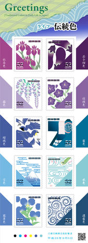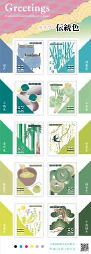 日本郵便株式会社(東京都千代田区、代表取締役社長 髙橋 亨)は、日本人が四季折々の日常生活の中で継承してきた日本の伝統色を題材として、グリーティング切手「グリーティング(ライフ・伝統色)」を発行します。