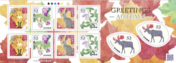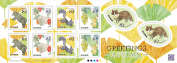 52円シート、82円シートともに秋の植物や動物をテーマとしました。