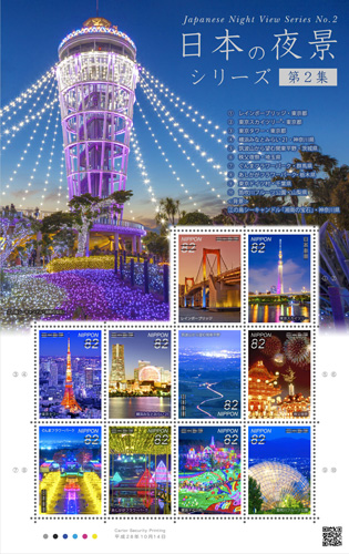 日本郵便株式会社(東京都千代田区、代表取締役社長 横山 邦男)は、日本各地の有名な夜景やライトアップされた観光地の風景等を題材としたシリーズの第2弾として、特殊切手「日本の夜景シリーズ 第2集」を発行します。