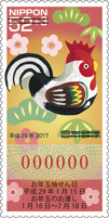 日本郵便株式会社(東京都千代田区、代表取締役社長 横山 邦男)は、郵便による年賀状の交換にご利用いただけるよう、特殊切手「平成29年用年賀郵便切手」を次のとおり発行します。