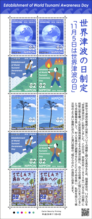 内閣府と防災推進協議会が共催で実施している「防災ポスターコンクール」の受賞作の中から、津波の防災意識を高める作品を切手のデザインとしました。
