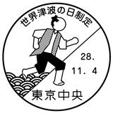 | 東京中央郵便局 | 手押し | 〒100-8994 東京都千代田区丸の内2-7-2 東京中央郵便局 「世界津波・手押し(東京中央局)」郵頼担当係 |
