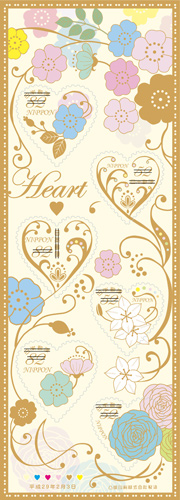 「ハート切手のレターセット」は、ハートの形の切手と、切手とデザインがおそろいのポストカード、便せん、封筒がセットになっているレターセットです。ちょっとした感謝の気持ちやお祝いのメッセージなどを伝える際にご利用ください。