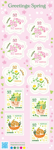 日本郵便株式会社(東京都千代田区、代表取締役社長 横山 邦男)は、お祝いやごあいさつ等の春のお手紙に多目的にご利用いただけるよう、グリーティング切手「春のグリーティング」を発行します。