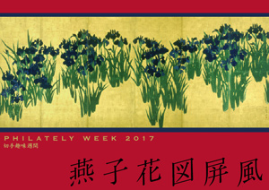 今回の切手デザインは、江戸時代の画家・尾形光琳(1658(万治元)年~1716(享保元)年)の屏風「燕子花図屏風」(根津美術館蔵)を採り上げました。