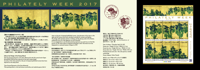 | 商品概要 | 特殊切手「切手趣味週間」1シートを収めた見開きの切手ケースです。ケース内側には解説(日本語、英語および中国語)を記載しています。 |