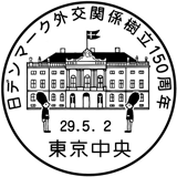 〒100-8994 東京都千代田区丸の内2-7-2 東京中央郵便局 「デンマーク・押印機(東京中央局)」郵頼担当係 |
