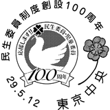 - 押印機による押印(東京中央郵便局のもの)…「民生委員・押印機(東京中央局)」
