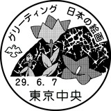 - 押印機による押印(東京中央郵便局のもの)…「日本の絵画・押印機(東京中央局)」