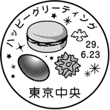 - 東京中央郵便局のもの…「ハピグリ・引受(東京中央局)」