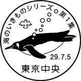- 手押しによる押印(東京中央郵便局のもの)…「海のいきもの1集・手押し(東京中央局)」