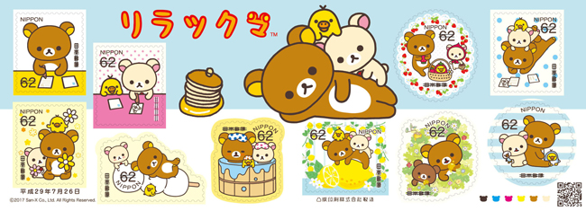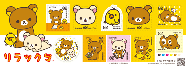 62円切手は様々なシリーズのリラックマたち、82円切手はリラックマたちの代表的なポーズ、はがきや手紙を書いたり読んだりするリラックマたちを共通の切手のデザインとしました。