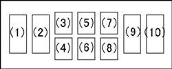 (1)、(2)、(9)および(10) 縦43.5mm × 横21.5mm (3)~(8) 縦27.0mm × 横21.5mm |