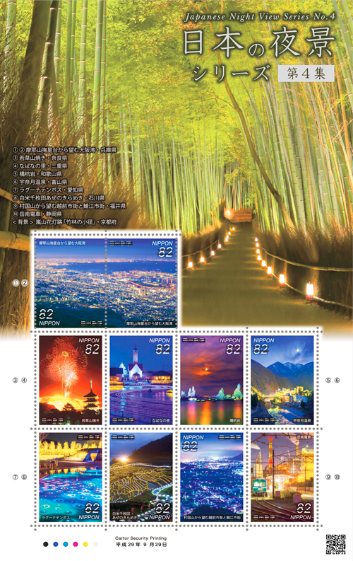 日本郵便株式会社(東京都千代田区、代表取締役社長 横山 邦男)は、日本各地の有名な夜景やライトアップされた観光地の風景等を題材としたシリーズの第4弾として、特殊切手「日本の夜景シリーズ 第4集」を発行します。