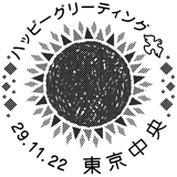 - 押印機による押印(東京中央郵便局のもの)…「ハピグリ・押印機(東京中央局)」