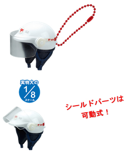 The unique helmet worn by post office delivery persons is accurately reproduced in detail.