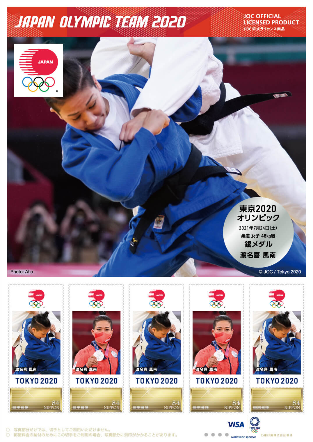 東京2020オリンピック日本代表選手 メダリスト公式フレーム切手(柔道 女子 48kg級 渡名喜 風南選手)2021年7月26日