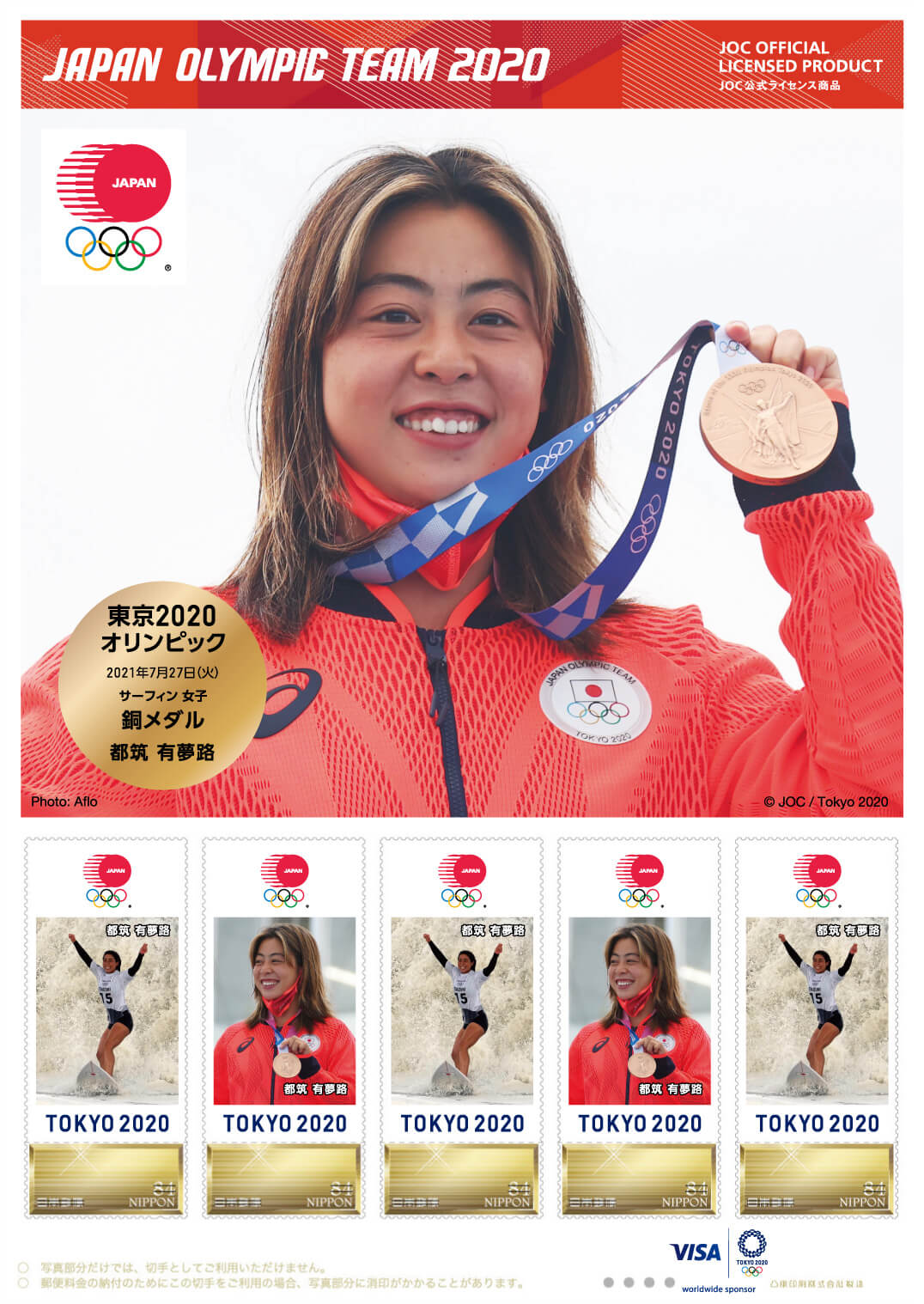 東京2020オリンピック日本代表選手 メダリスト公式フレーム切手(サーフィン 女子 都筑 有夢路選手)2021年7月29日