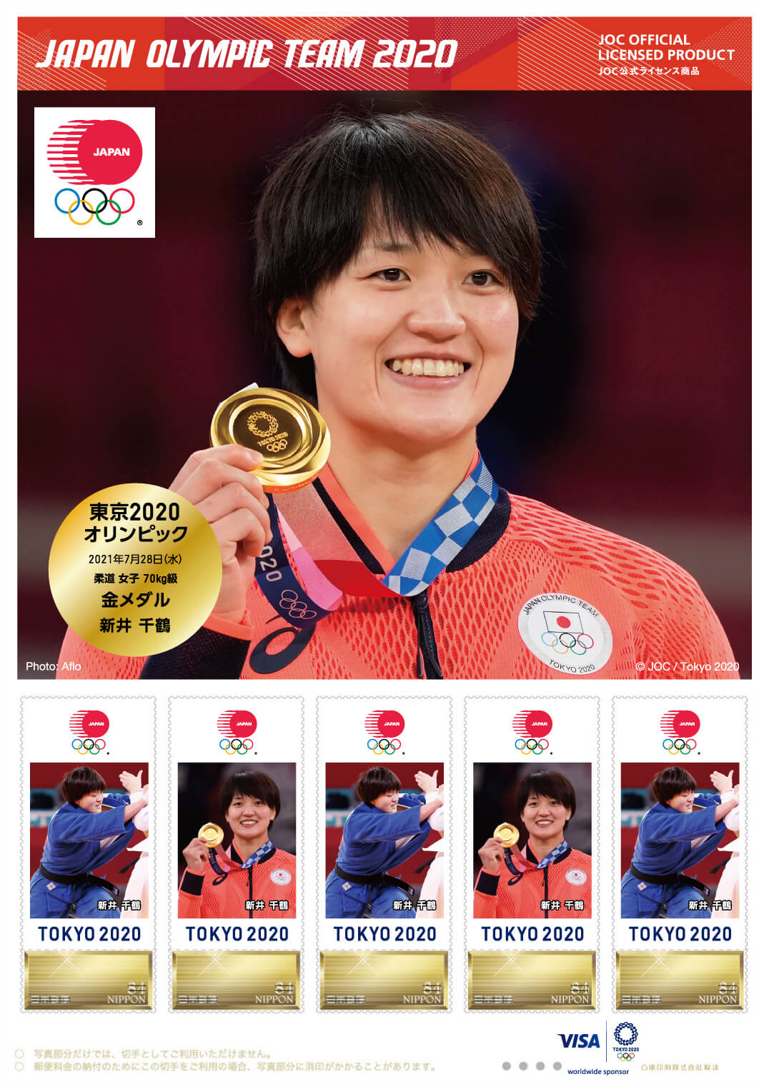 東京2020オリンピック日本代表選手 メダリスト公式フレーム切手 (柔道 女子 70kg級 新井 千鶴選手)(JOC公式ライセンス商品) |