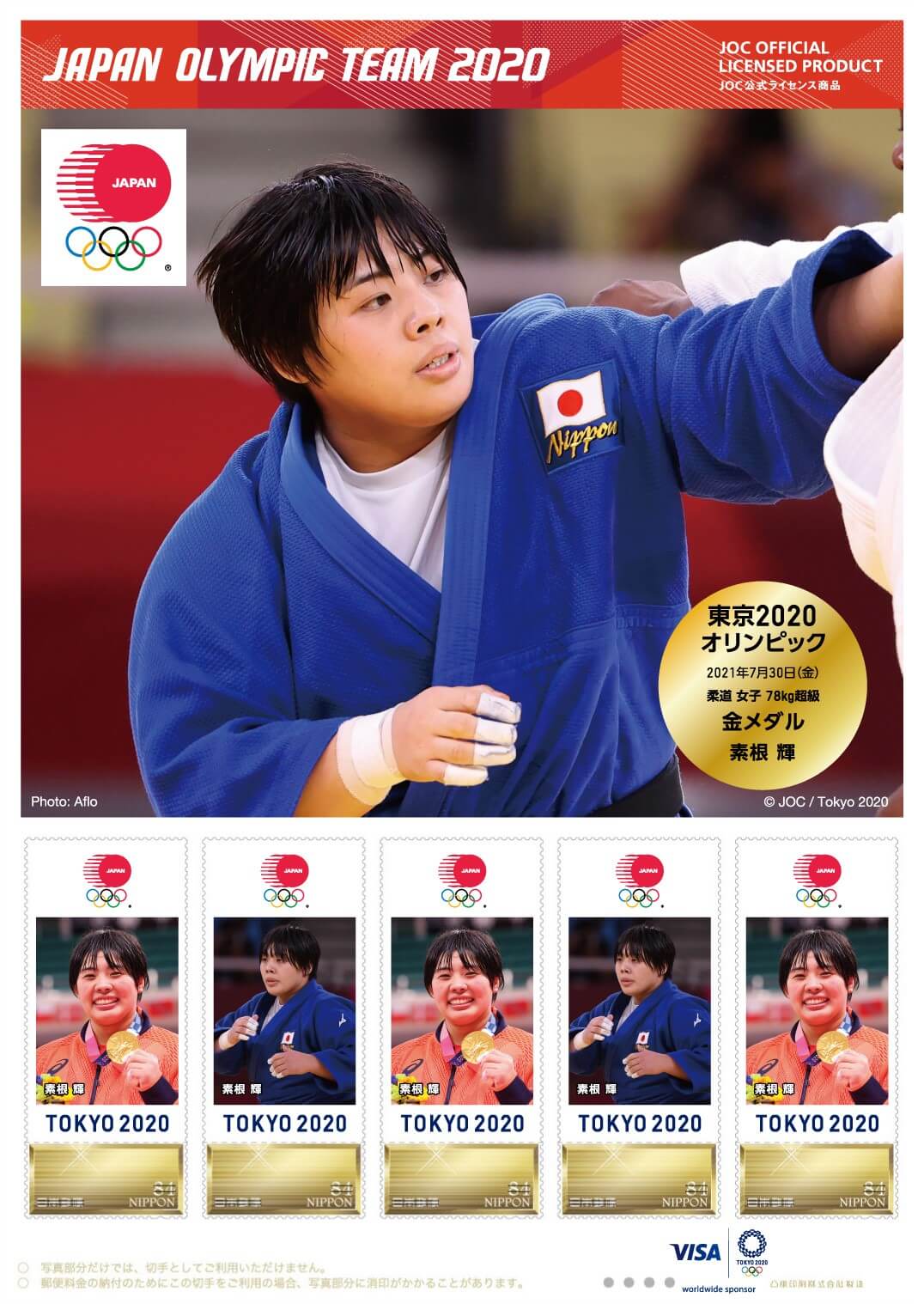 東京2020オリンピック日本代表選手 メダリスト公式フレーム切手 (柔道 女子 78kg超級 素根 輝選手)(JOC公式ライセンス商品) |