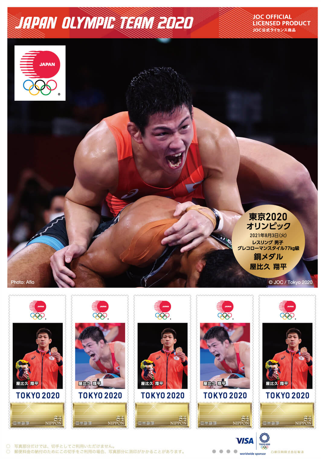 東京2020オリンピック日本代表選手 メダリスト公式フレーム切手(レスリング 男子 グレコローマンスタイル77kg級 屋比久 翔平選手)2021年8月5日