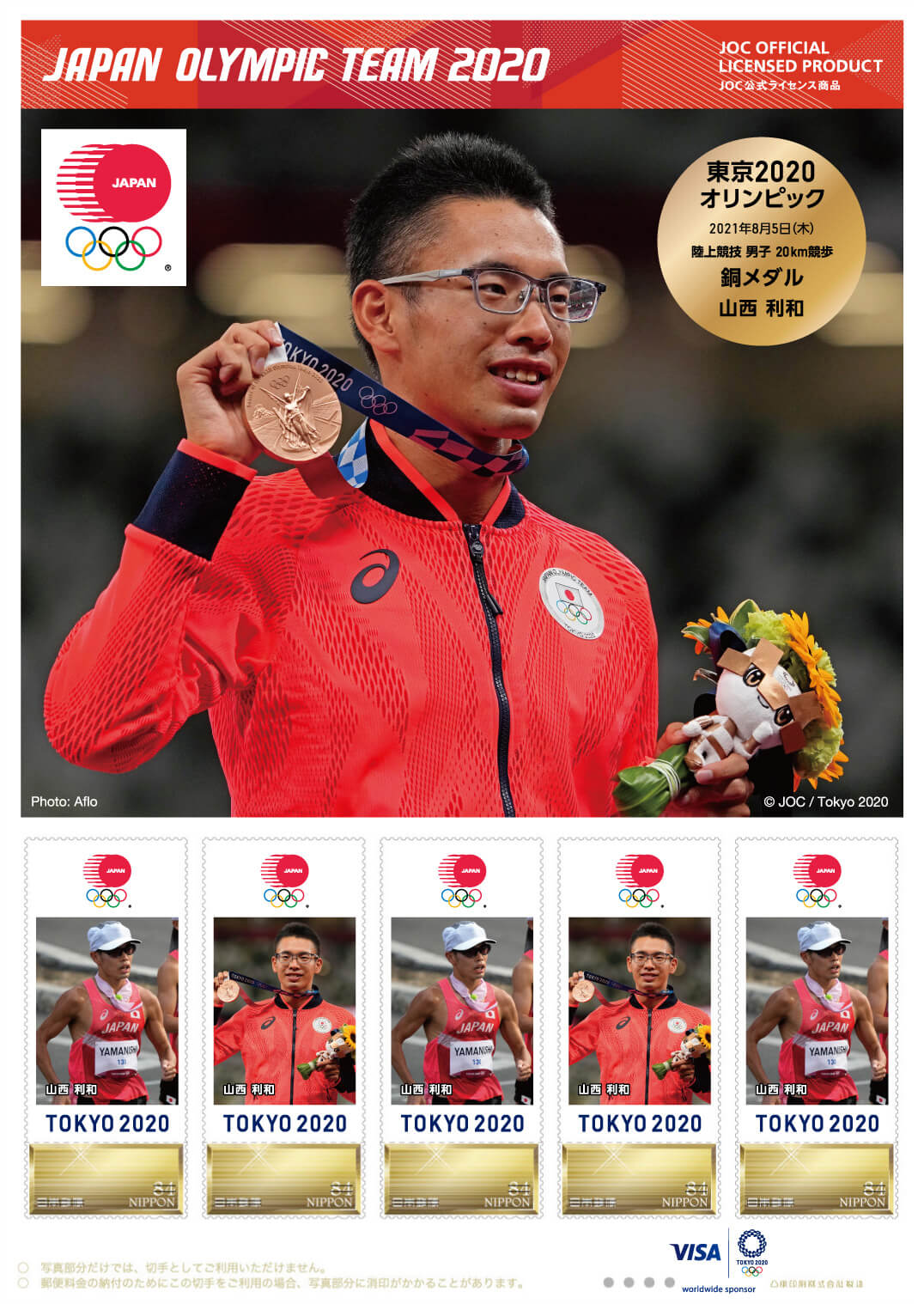 東京2020オリンピック日本代表選手 メダリスト公式フレーム切手(陸上競技 男子 20km競歩 山西 利和選手)2021年8月8日