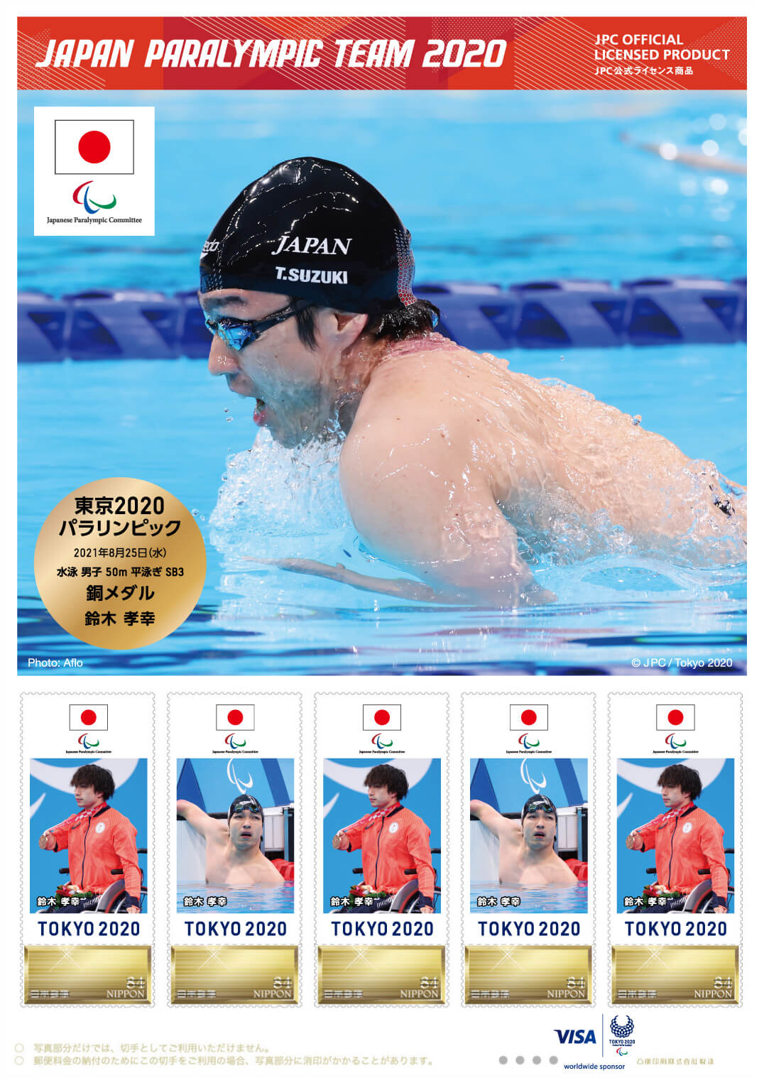 東京2020パラリンピック日本代表選手 メダリスト公式フレーム切手(水泳 男子 50m 平泳ぎ SB3 鈴木 孝幸選手)2021年8月27日