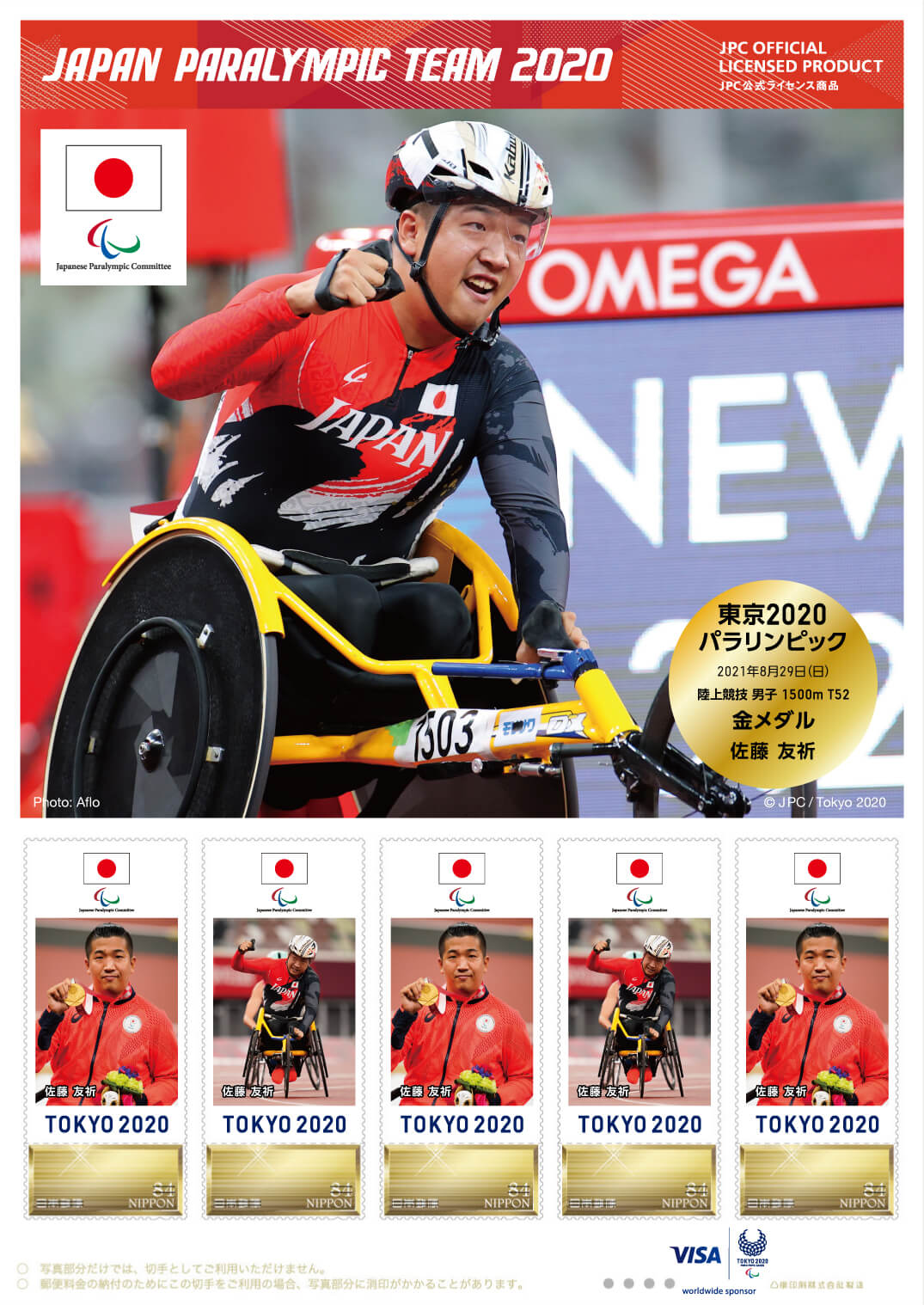 東京2020パラリンピック日本代表選手 メダリスト公式フレーム切手(陸上競技 男子 1500m T52 佐藤 友祈選手)2021年8月31日