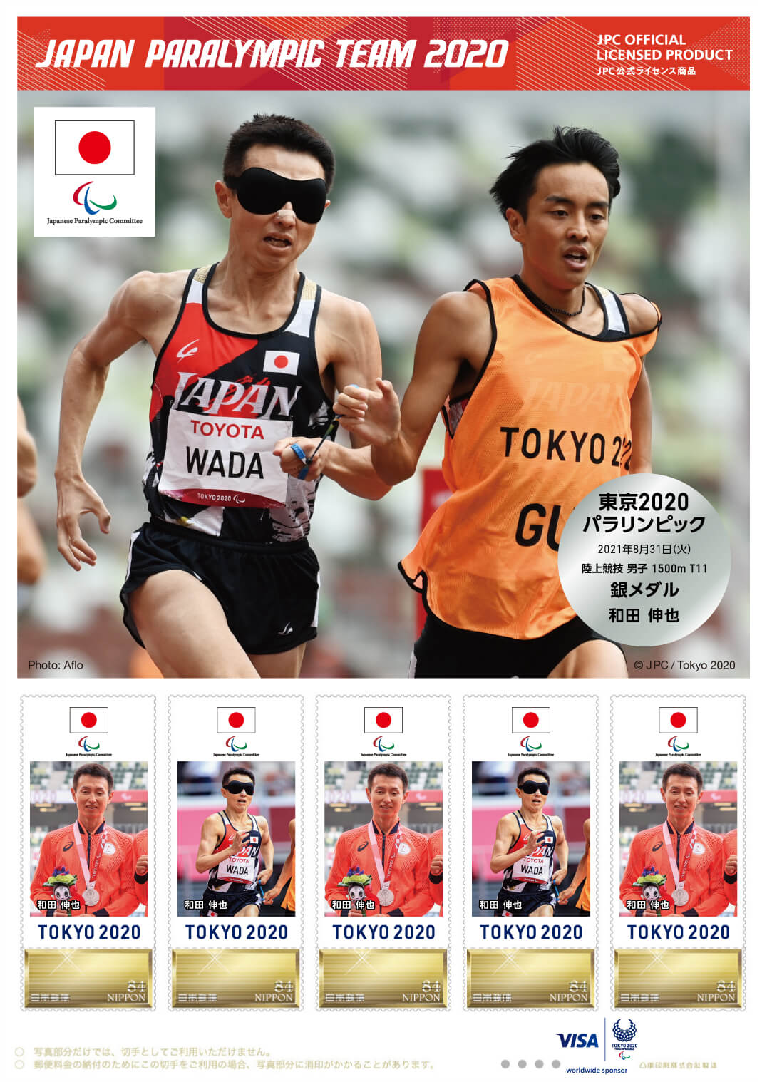 東京2020パラリンピック日本代表選手 メダリスト公式フレーム切手(陸上競技 男子 1500m T11 和田 伸也選手)2021年9月2日