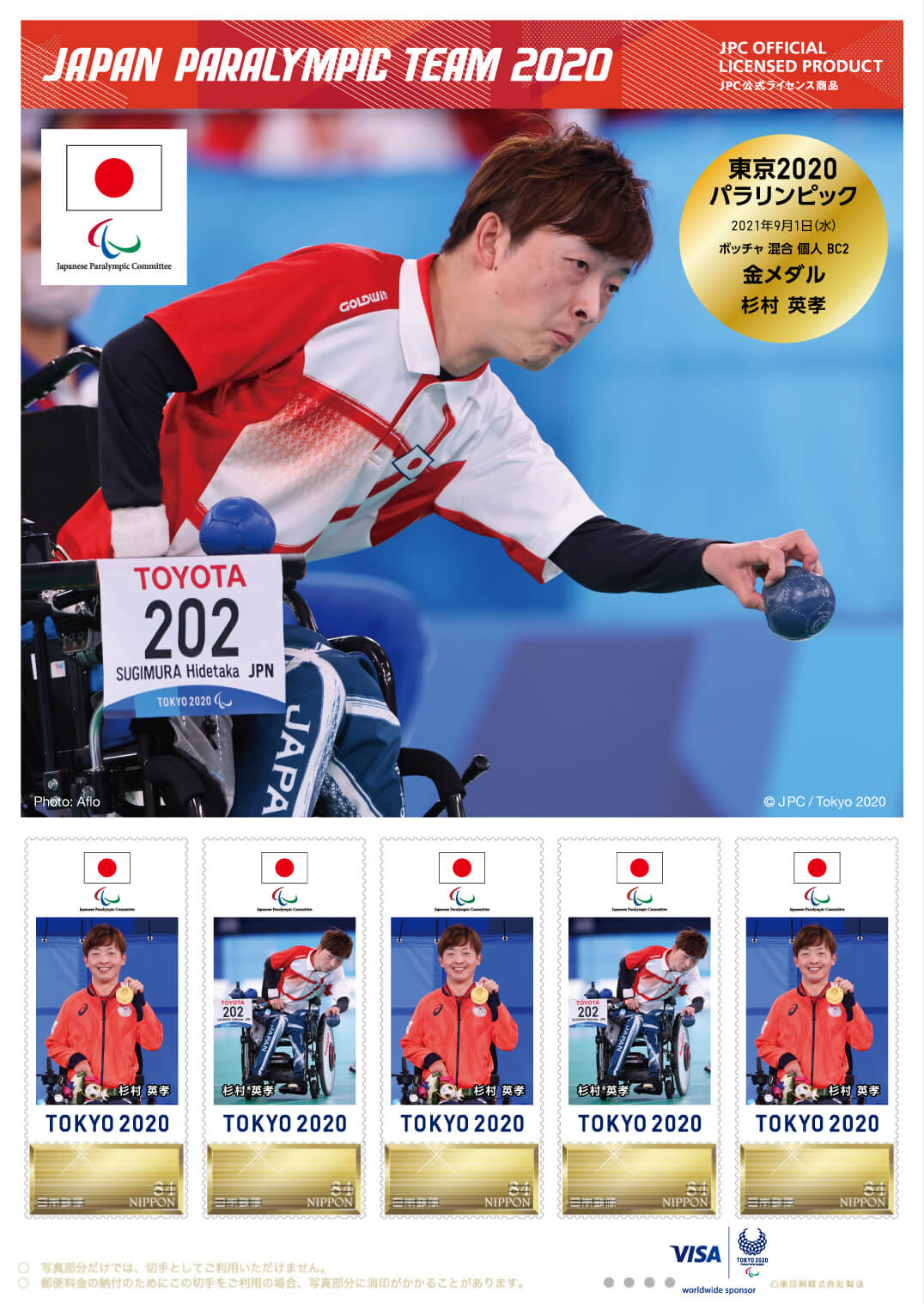 東京2020パラリンピック日本代表選手 メダリスト公式フレーム切手(ボッチャ 混合 個人 BC2 杉村 英孝選手)2021年9月3日