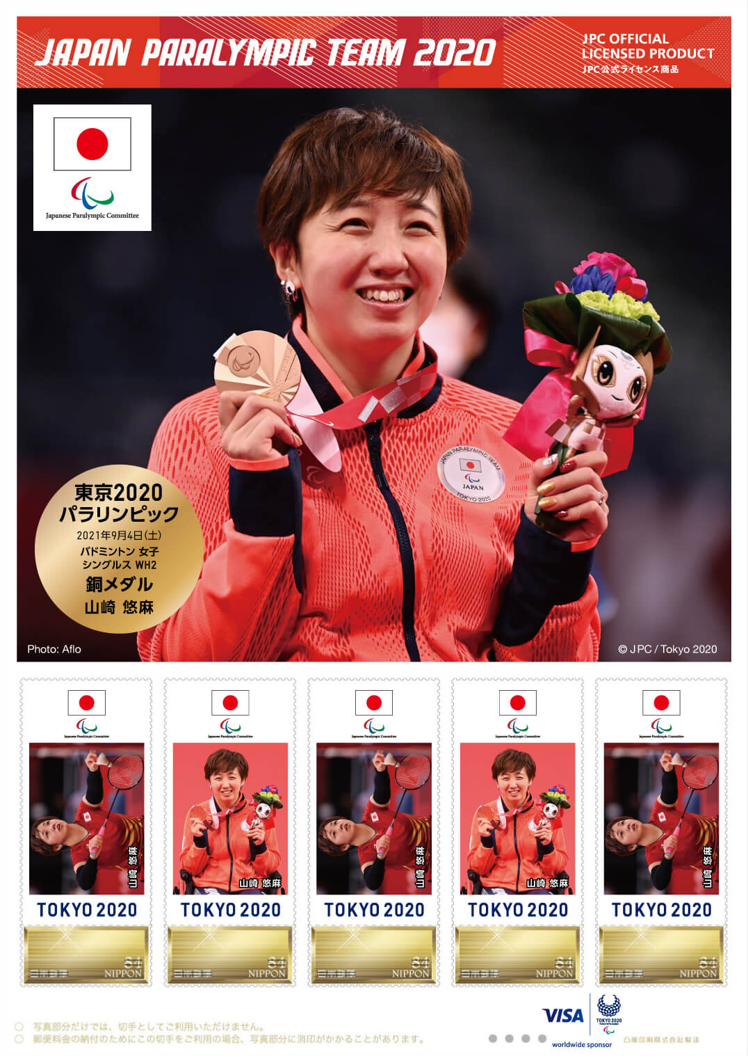 東京2020パラリンピック日本代表選手 メダリスト公式フレーム切手 (バドミントン 女子 シングルス WH2 山崎 悠麻選手)(JPC公式ライセンス商品) |